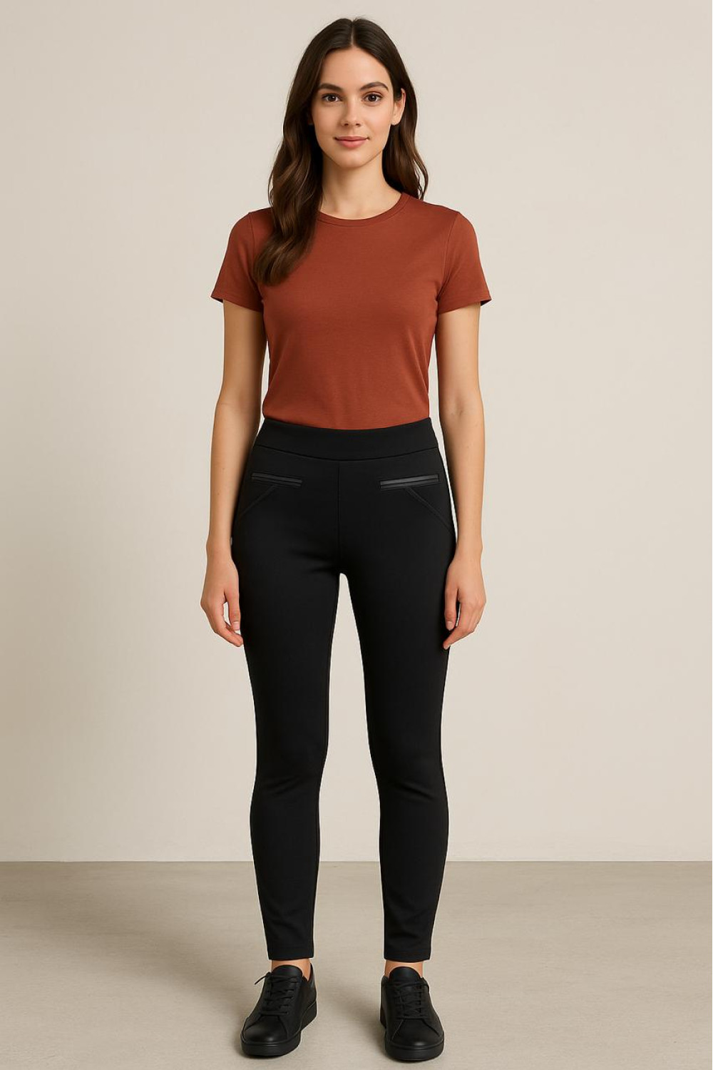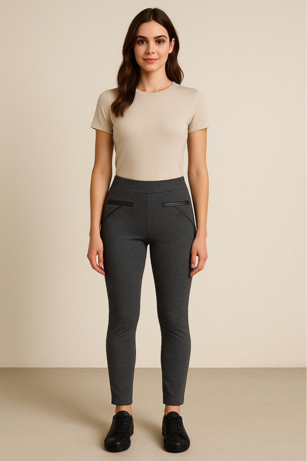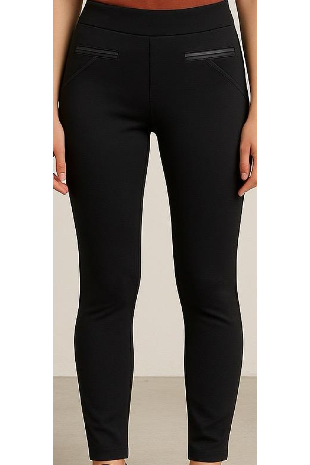 El pantalón Kenia es la combinación perfecta entre estilo y confort. Su diseño a la cintura y corte entubado estilizan la figura, mientras que la tela súper ponty stretch ofrece elasticidad, suavidad y libertad de movimiento. Los vivos frontales en Vini piel le dan un toque moderno y sofisticado que lo hace ideal para outfits casuales o deportivos con un toque urbano. Disponible en colores negro, marino y gris.