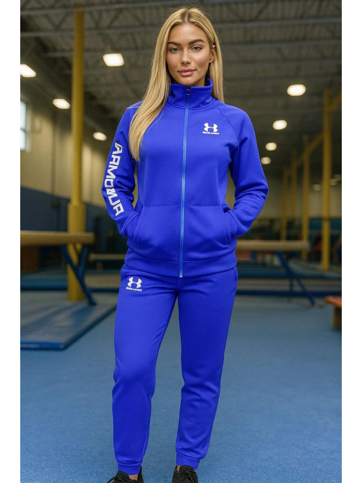 Conjunto deportivo unitalla (32-34) confeccionado en tela Tekno, ideal para brindar comodidad, flexibilidad y estilo en cada movimiento. Su diseño con cierre frontal, bolsillos y detalles tipo Armour lo hace perfecto para entrenamientos, caminatas o para un look casual moderno.